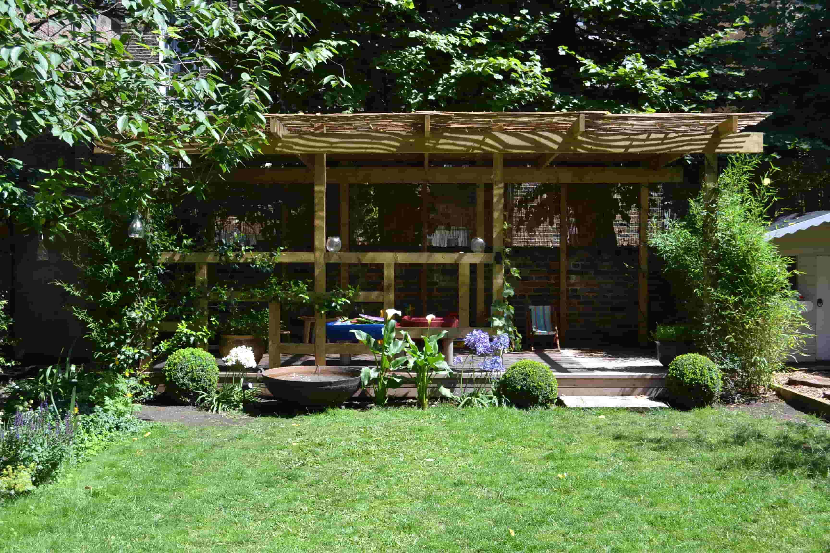 Vertical structures help to divide spaces in a garden without covering too much from the view. It is easy to create an atmospheric space for a party with a pergola, and some hanging fairy lights or lanterns within the planting. Many decorative features fall into this category as well: circular view holes to highlight specimens in a garden, daybeds for kids and sun lounging and outdoor eating areas with bamboo roofs.