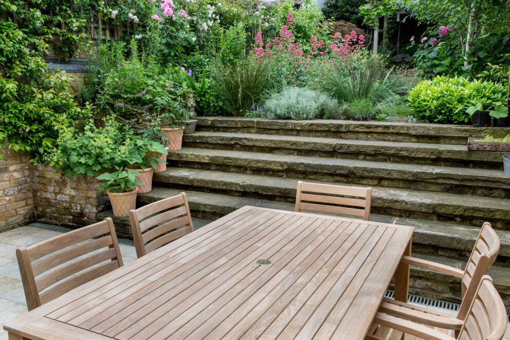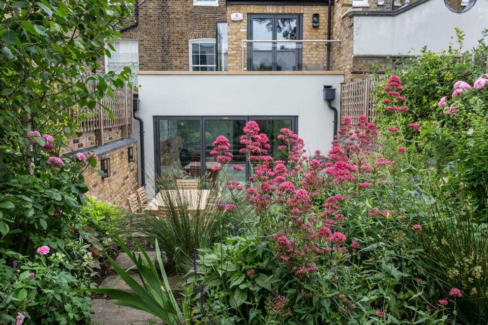 A long and thin garden overlooking Brook Green in West London presented a strong challenge to James in 2017 – how to make it look interesting while at the same time finding solutions to many problems. Namely, being overlooked by a large school at the back of the garden, the long and thin aspect as well as having a large change in level. The cedar pergola doubles up as the storage unit and the lawn becomes more of a stage for the surrounding plants to perform their wonder. Espaliered fruit trees break up the sunny walls whilst silver birch trees provide more privacy and structure from the west facing side. The stepping stones and raised beds, filled with flowering perennials, help break up the garden and create an interesting dynamic. Finally x5 mature and evergreen Prunus lusitania angustifolia provide privacy from the school at the back of the garden.